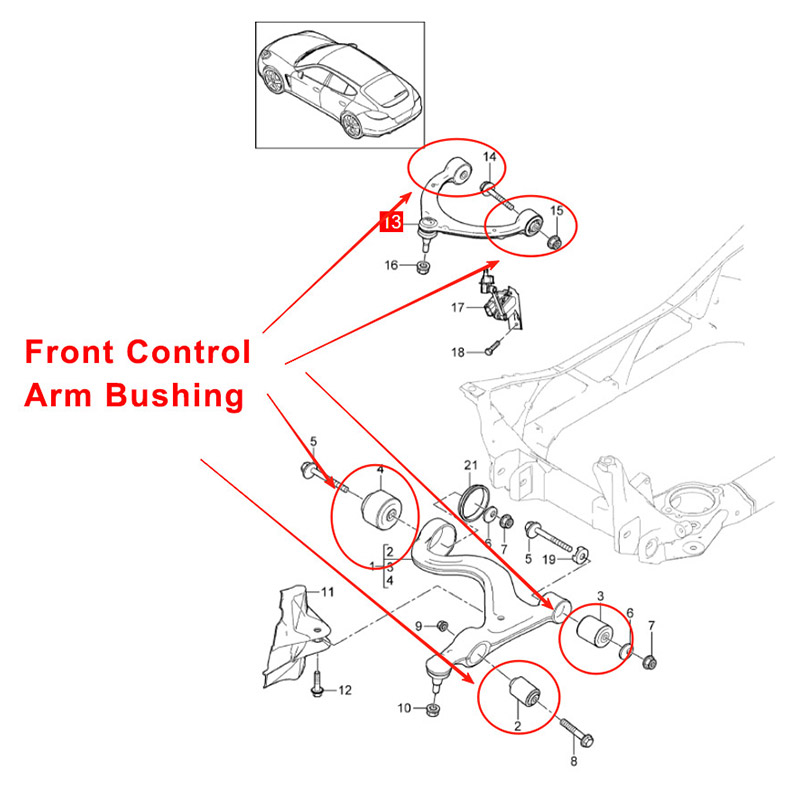 Tuno निर्माता चीन कारखाना आपूर्ति पोर्श Panamera 2014-2016 अगाडि माथिल्लो र तल्लो नियन्त्रण हात बुशिङ किट, OE